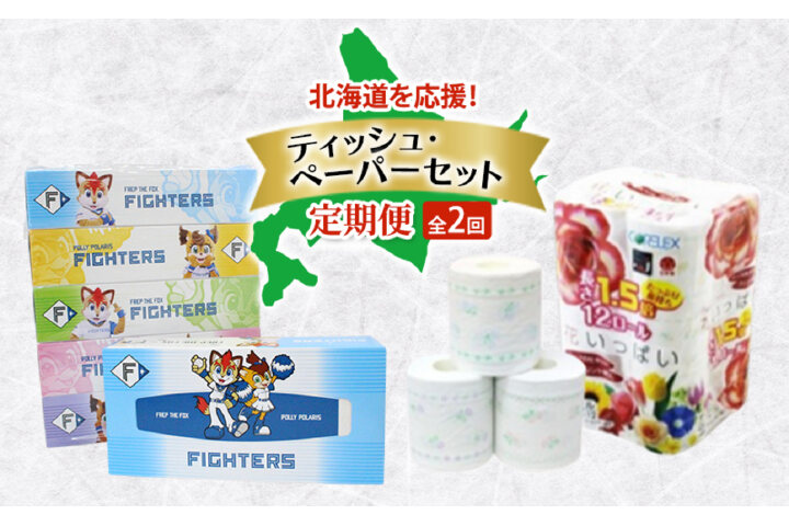 生活必需品のティッシュ・トイレットペーパーを2ヵ月連続でお届けいたします。