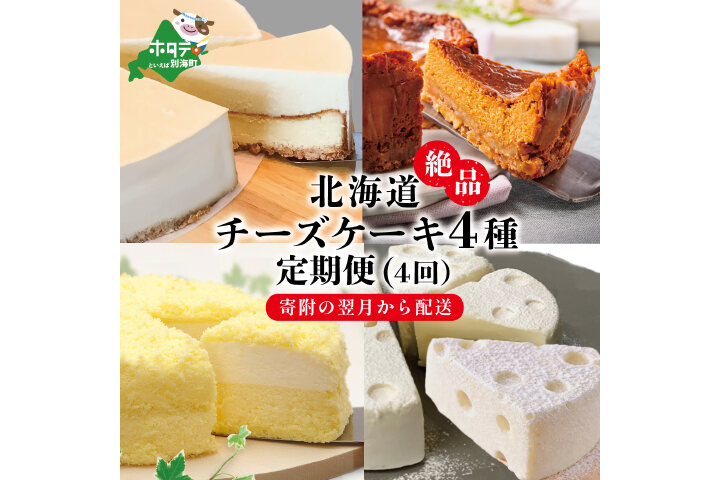 北海道 絶品 チーズケーキ 4種 定期便(4回) 寄附の翌月から配送する スイーツ 定期便