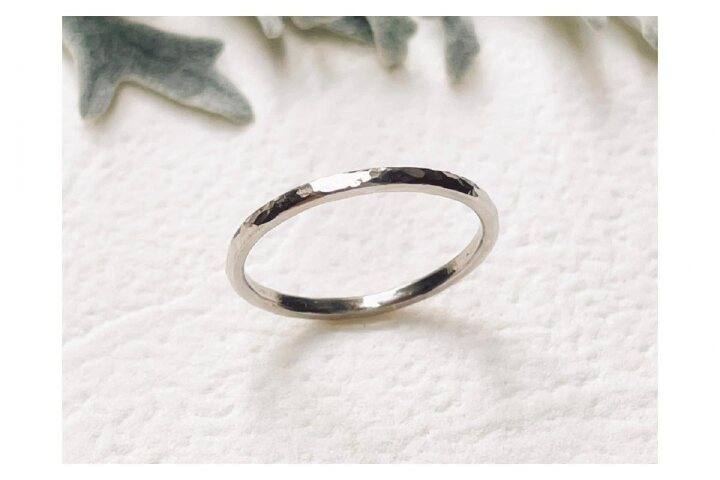 シルバーで制作した、ハンドメイドの細リング。 丸い槌目が…
