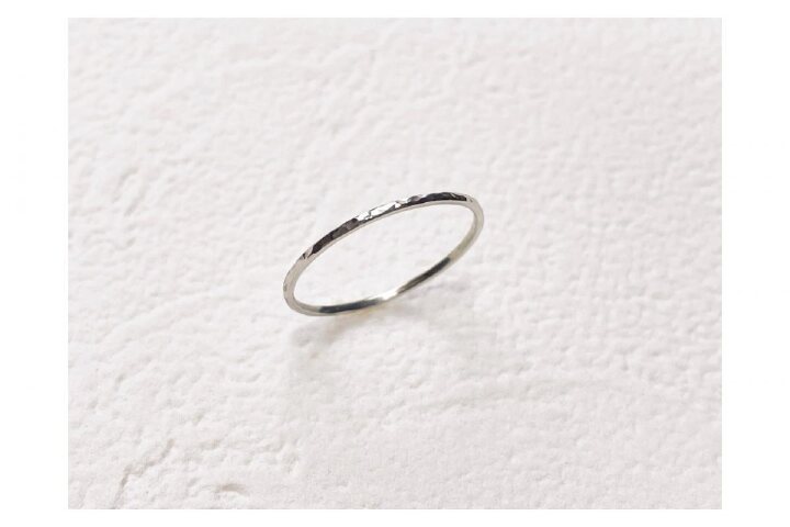 シルバーで制作した、ハンドメイドの細リング。 丸い槌目が…