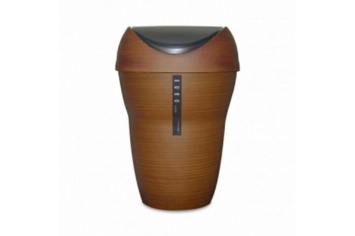 2005年の発売以降、タツクラフトのロングラン売筋商品のひとつです。グラマラスなボリュームと引き締まったスリムさを持ち合わせる滑らかな曲線フォルムのダストボックス。「塗装」することで質感が一層美しく見えるようデザインされています。この木目塗りは、丈夫なプラスチック素材に紀州漆器の塗り職人がひとつひとつ木目を画いて作っています。1台ごとに木目の模様は異なり同じ模様や濃度のものはありません。手作業ならではの美しい質感が魅力です。材質は樹脂製ですので、木材加工品に比べて水分を含んだゴミなども入れることができ、お手入れもカンタンです。上部のスイングカバーはブラック塗装で、本体色とのコントラストが心地よいアクセントになっています。