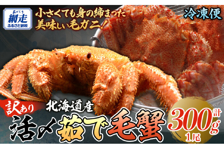 - 商品内容:活〆茹で毛蟹1尾(約300g)