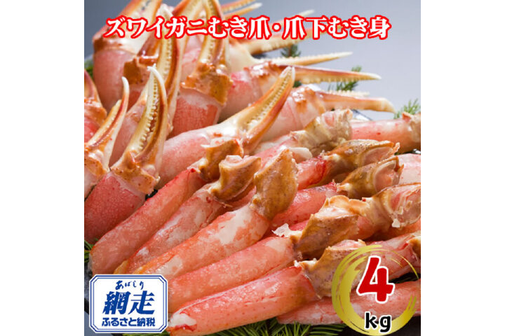 生冷凍ズワイ蟹むき爪・爪下セット 4kg ABE119