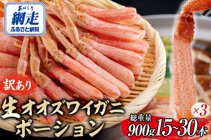 【訳あり】北海道産 冷凍生オオズワイガニポーション15~30本 900g(300g×3)ABR021