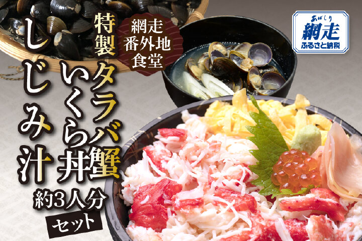 網走番外地食堂の特製タラバ蟹いくら丼しじみ汁約3人分セット ABAO136