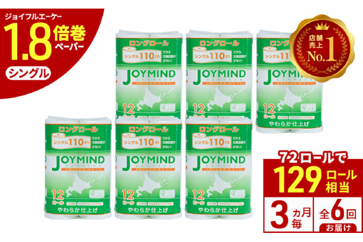 定期便 3ヵ月毎 全6回 ジョイマインドトイレットペーパー シングル 計72ロール 57461959