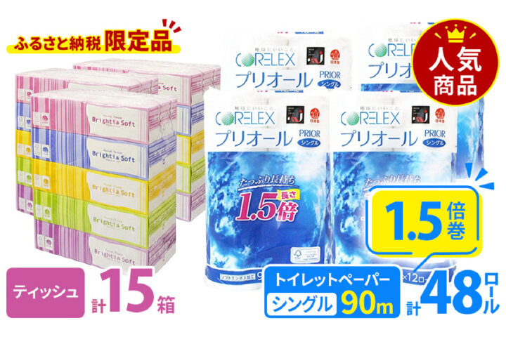 トイレット ペーパー シングル計48ロール&ソフト ボックスティッシュ15箱 57462037