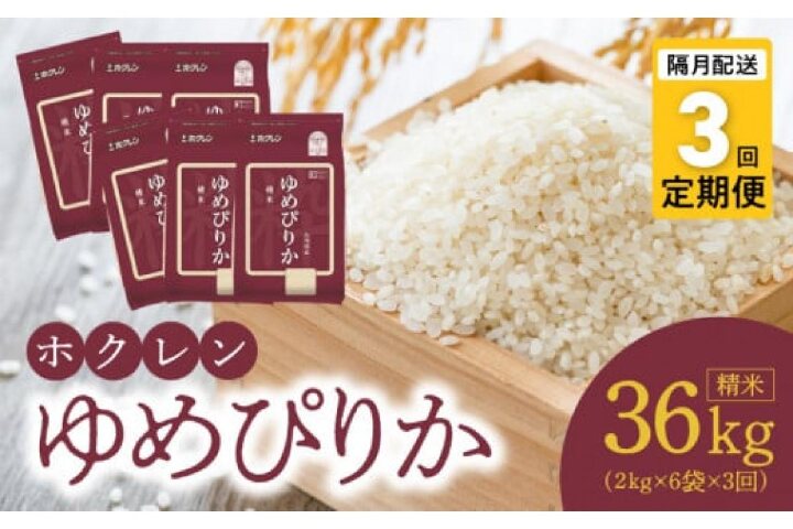 ホクレンゆめぴりか 精米12Kg(2Kg×6袋)を隔月で3回お届けします。
