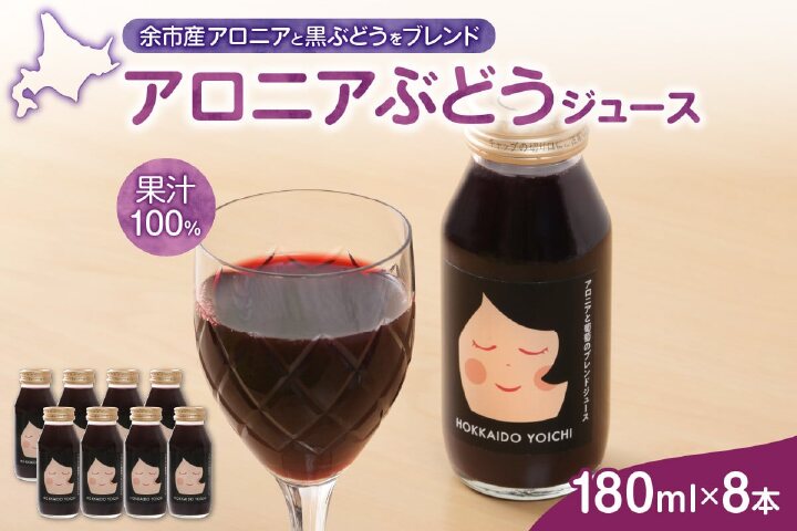 余市産 アロニア・ぶどう果汁100%ジュース添加物無添加 180ml×8本セット_Y018-0069