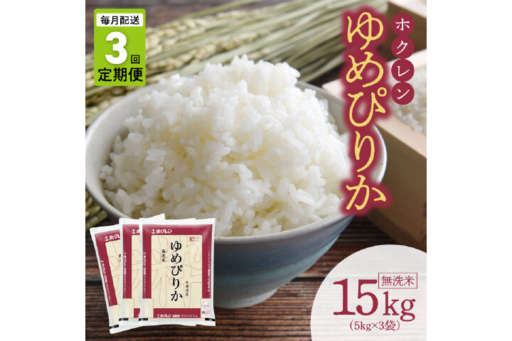 (無洗米15kg)ホクレンゆめぴりか【定期便3回】_Y010-0489