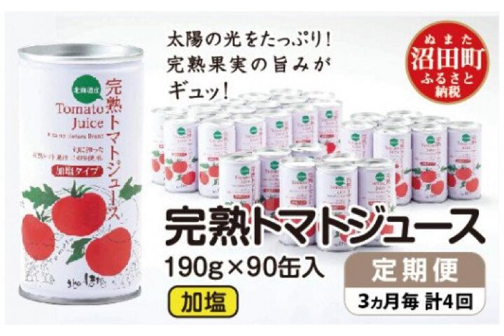 - 【定期便】完熟トマトジュース(加塩)190g×90缶×4回配送(3ヵ月おき)