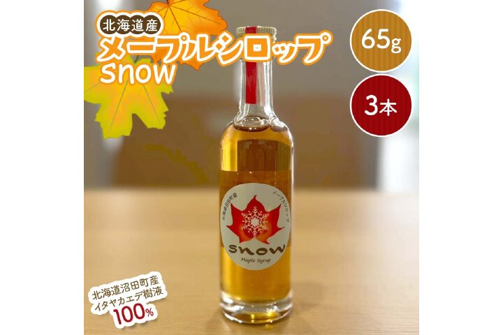 メープルシロップ「snow」(65g)3本セット 国産 北海道 樹液 食品 沼田町 n-0111