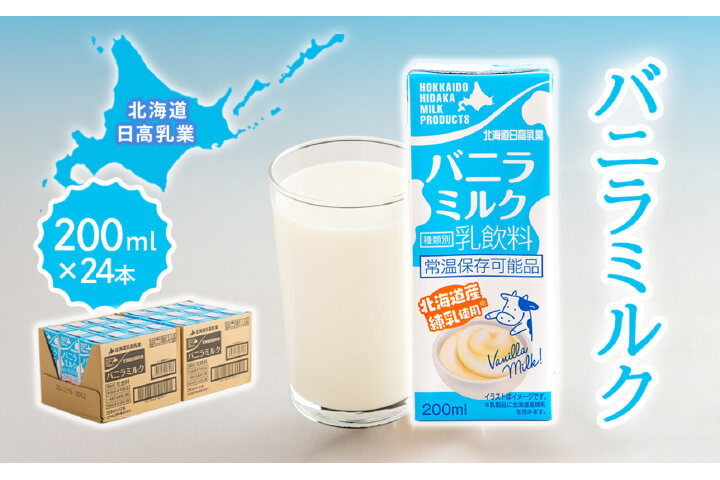 北海道日高乳業 バニラミルク 200ml×24本 BRTR015