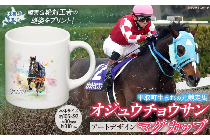 障害レース界の絶対王者「オジュウチョウサン」のアートデザインがプリントされた新作のオリジナル陶器マグカップです。