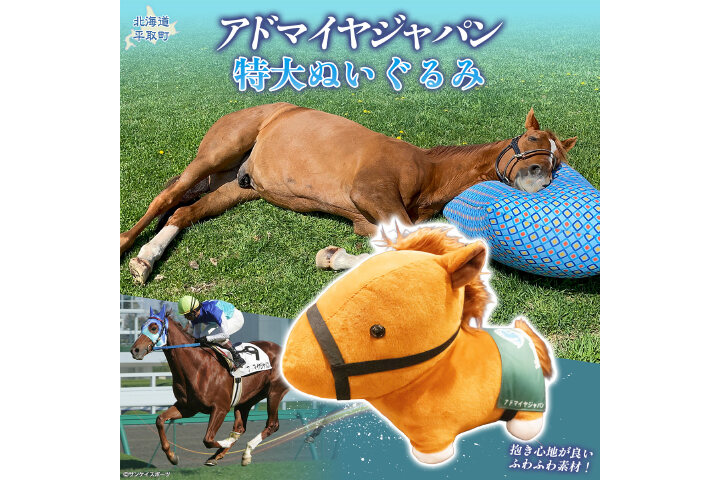 CMでもおなじみの「アドマイヤジャパン」の存在感たっぷりの特大ぬいぐるみです。
