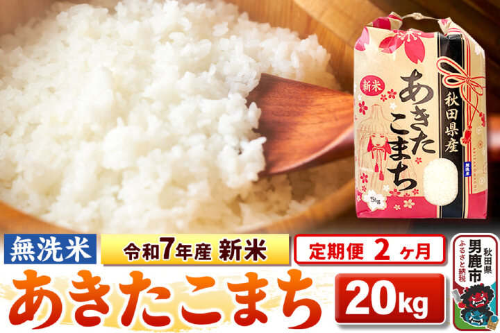 《定期便2ヶ月》令和7年産 新米【無洗米】 あきたこまち 20kg(5kg×4袋)|10599