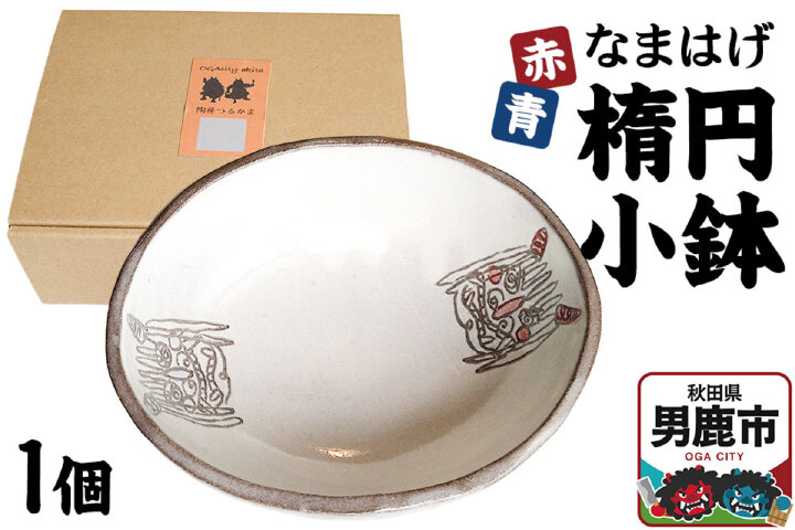 赤青なまはげ 楕円小鉢 箱入り1個 秋田 男鹿市 陶房つるかま|10997
