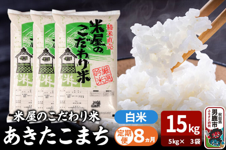 令和7年産《定期便8ヶ月》『米屋のこだわり米』あきたこまち 白米 15kg(5kg×3…|11023