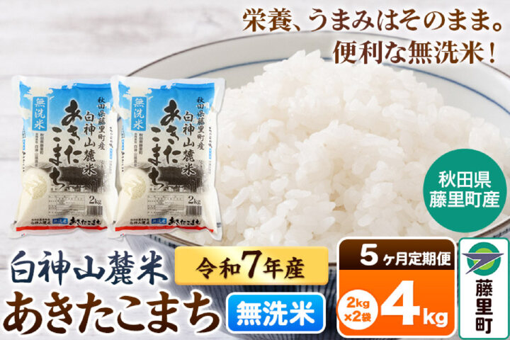 【定期便5ヶ月】米 令和7年産 新米先行受付 白神山麓米あきたこまち 無洗米 4kg(…|10213
