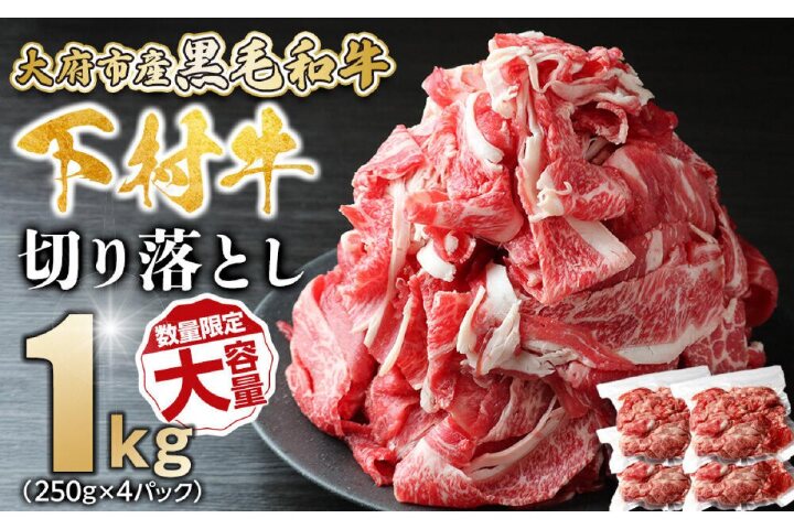 【数量限定・増量中】大府市特産黒毛和牛「下村牛」切り落とし 1.0kg(250g×4パック)