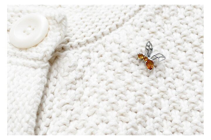シトリンの黄色がよく映えるミツバチがワンポイントとなり、シンプルな服装も華やかに彩ります。