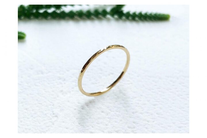 シルバーで制作した、ハンドメイドの細リング。 丸い槌目が…