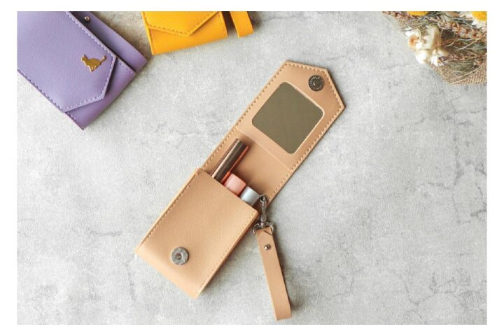 【ベージュ】毎日の“ときめき”を仕込めるリップケース キーホルダーストラップ【ミラー付き・3本入る】