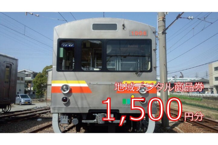 寄附額の25%分の1,500円の地域デジタル商品券です。水間鉄道をはじめとする貝塚市内の「テツふる」加盟店で物産品の購入や飲食、体験などが1円単位で楽しめます。