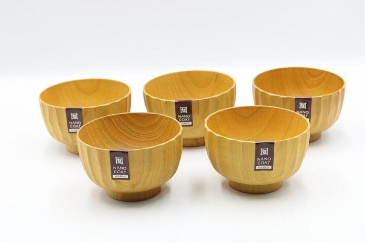 商品:5個 サイズ:φ11.2×7cm 材質:ナツメ材 塗装:ウレタン塗装(ケイ素ガラスコーティング) 容量:290ml