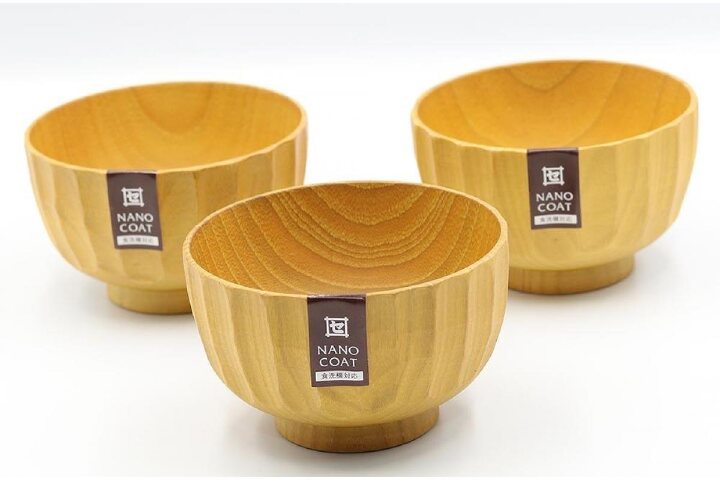 商品:3個 サイズ:φ13×8cm 材質:ナツメ材 塗装:ウレタン塗装(ケイ素ガラスコーティング) 容量:500ml