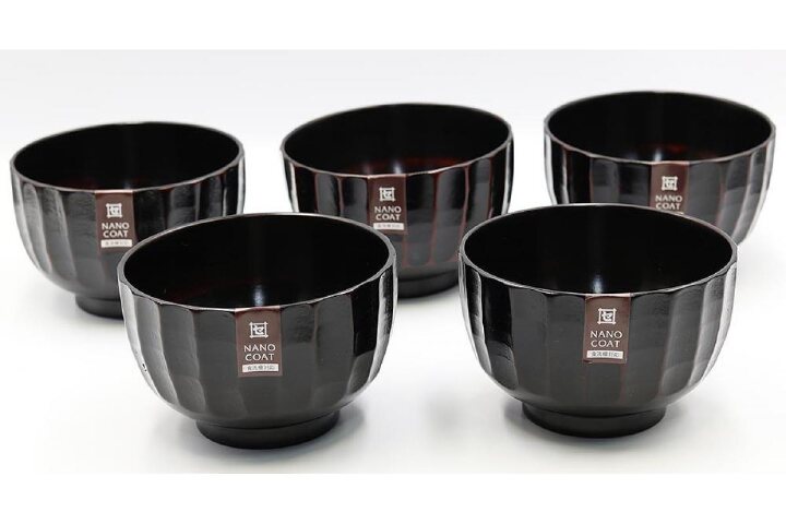 商品:5個 サイズ:φ13×8cm 材質:ナツメ材 塗装:漆塗装(ケイ素ガラスコーティング) 容量:500ml