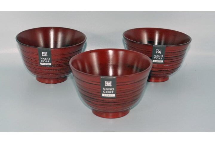 商品:3個 サイズ:φ11×7cm 材質:ナツメ材 塗装:漆塗装(ケイ素ガラスコーティング) 容量:290ml