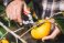 (2)皮を剥きます。(吊るし柿は、吊るし紐またはクリップを付けた状態にします)