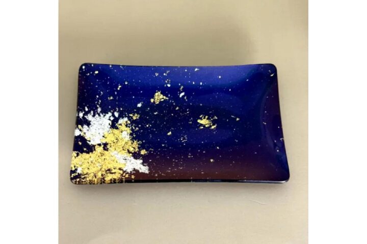 ガラスの裏面から漆を意匠していますので、表面はガラスであるため従来の漆器では使用不可能とされていたカトラリーの使用が可能な斬新なアイテムです。
