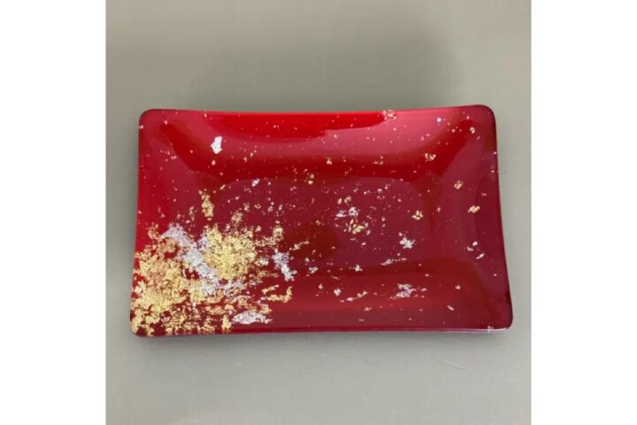 ガラスの裏面から漆を意匠していますので、表面はガラスであるため従来の漆器では使用不可能とされていたカトラリーの使用が可能な斬新なアイテムです。