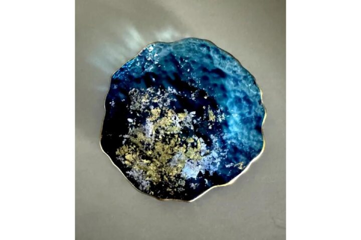 ガラスの裏面から特殊漆を意匠付けし、特殊食器洗浄機対応コートで漆をカバーしている漆器です。