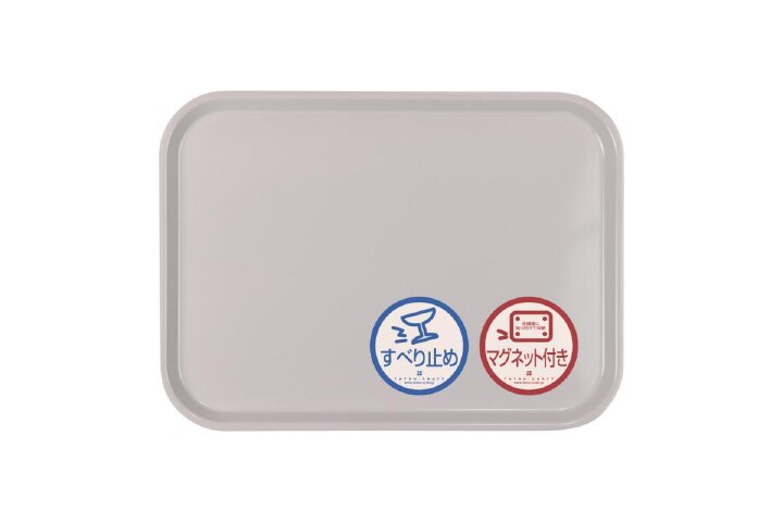 配膳に使ったら水洗いして拭き取り、冷蔵庫やスチール棚の側面に貼って収納できます。置き場所が決まるので、取り出しや片付けがスムーズ。表面はすべり止め加工で食器がずれにくいです。