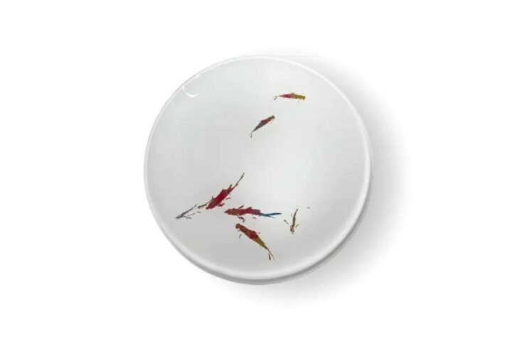 真っ白なお皿に色鮮やかな鯉が特徴。