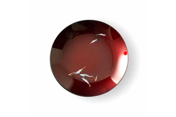 ガラスの裏面から特殊漆を意匠付けし、特殊食器洗浄機対応コートで漆をカバーしている漆器です。
