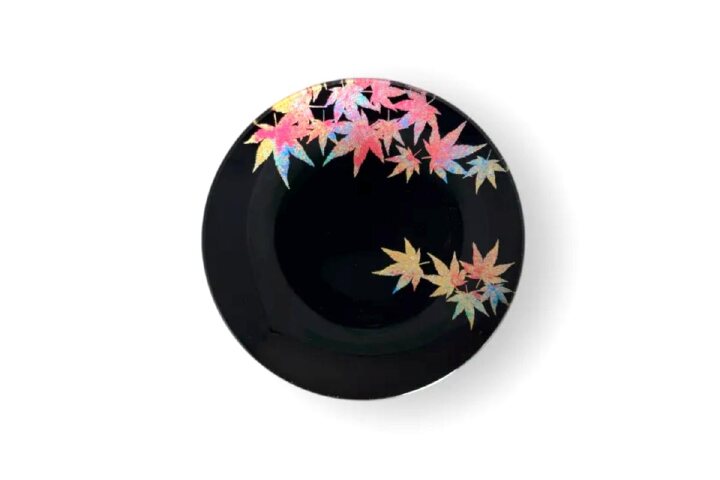 漆黒のお色味のお皿に鮮やかな色鮮やかな紅葉の絵柄が映えて、とても素敵な小皿となっております。