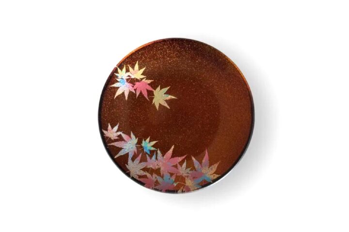 綺麗な梨地レッドのお色味に色鮮やかな紅葉を施した素敵な小皿となっております。