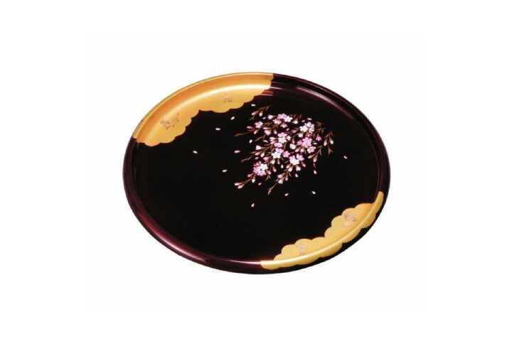 紀州漆器職人が丁寧に仕上げた【丸盆 30cm 溜 金雲さくら】です。