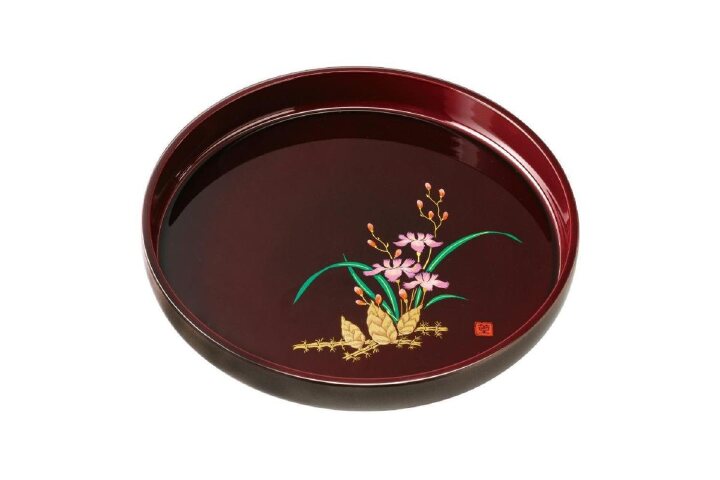 紀州漆器職人が丁寧に仕上げた【丸盆 紫雲杢 鉄線(盛絵)…