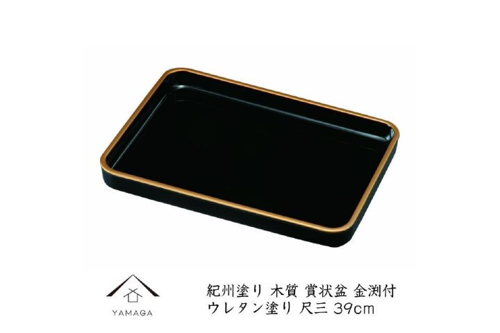 紀州漆器職人が丁寧に仕上げた【13.0 賞状盆 金渕付】です。