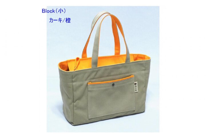 Block(小)カーキ/橙[尾道 帆布鞄 彩工房]